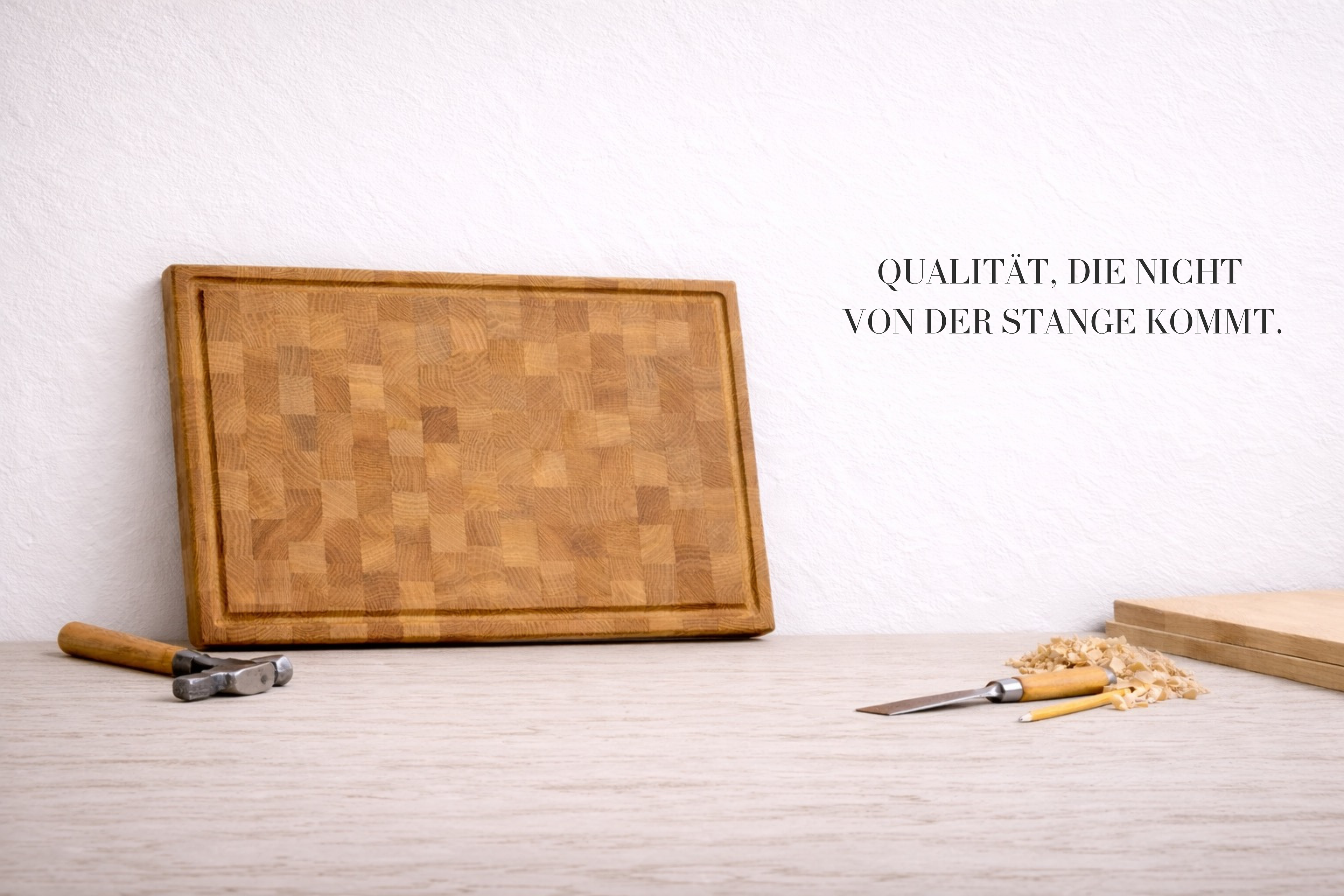 Stirnholz-Schneidebrett aus Eiche Massivholz mit Anschlagkante