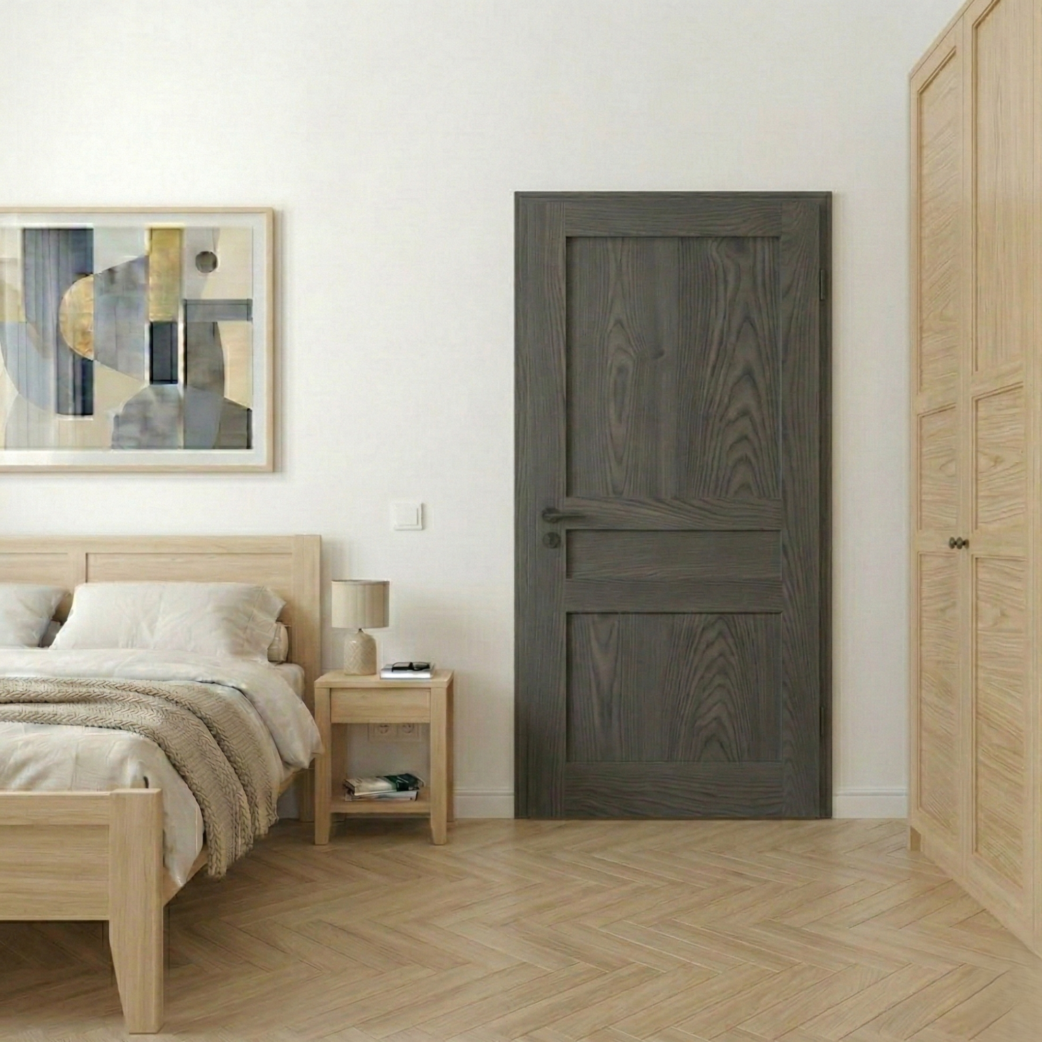Türblatt und Zarge bilden eine bündige Ebene. Minimalistisch, hochwertig und perfekt kombinierbar mit verdeckt liegenden Bändern (z. B. Tectus).