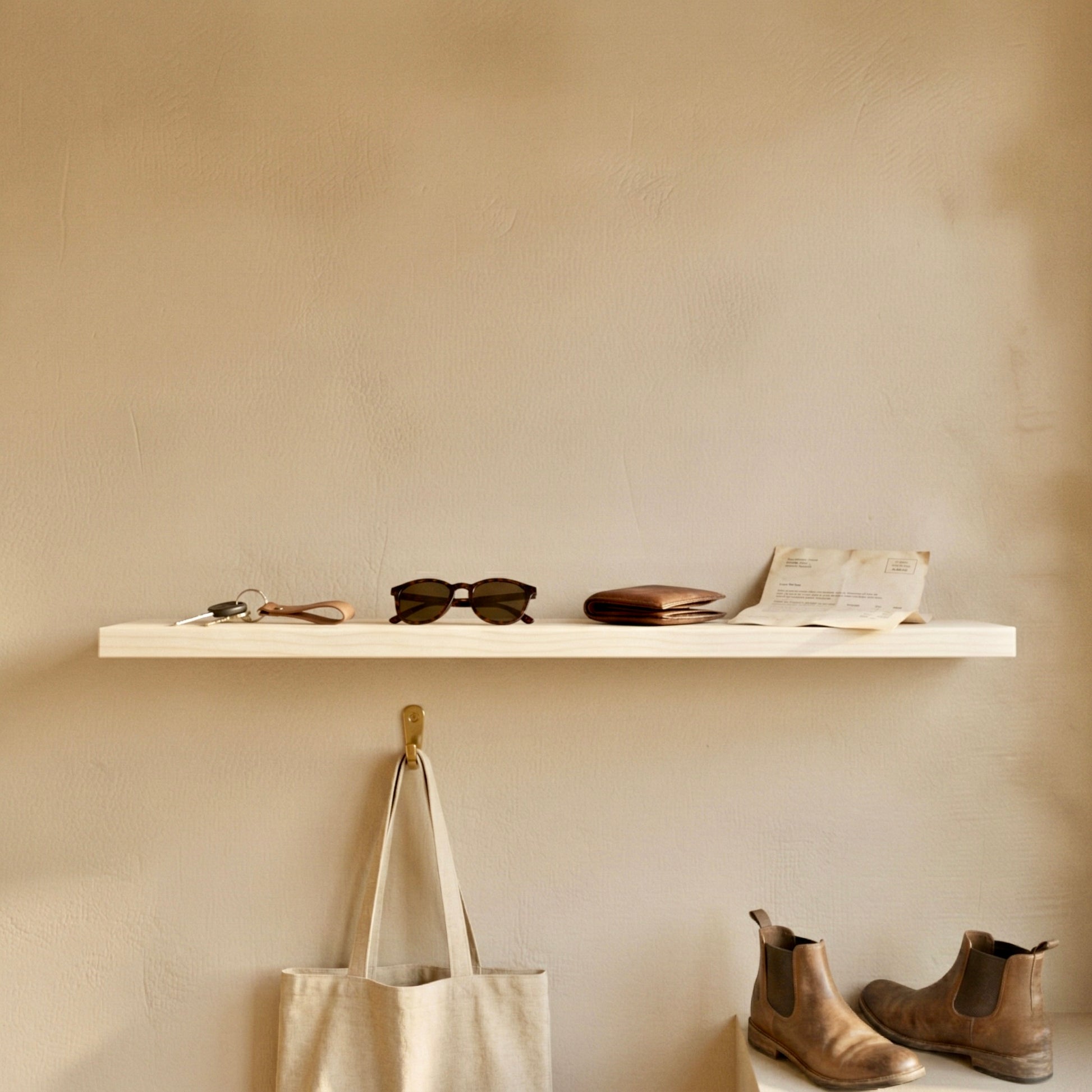 Das schwebende Wandregal aus massiver Eiche verbindet minimalistisches Design mit der natürlichen Schönheit echten Holzes. Durch die verdeckte Befestigung wirkt das Regal, als würde es frei an der Wand schweben – klar, ruhig und zeitlos.