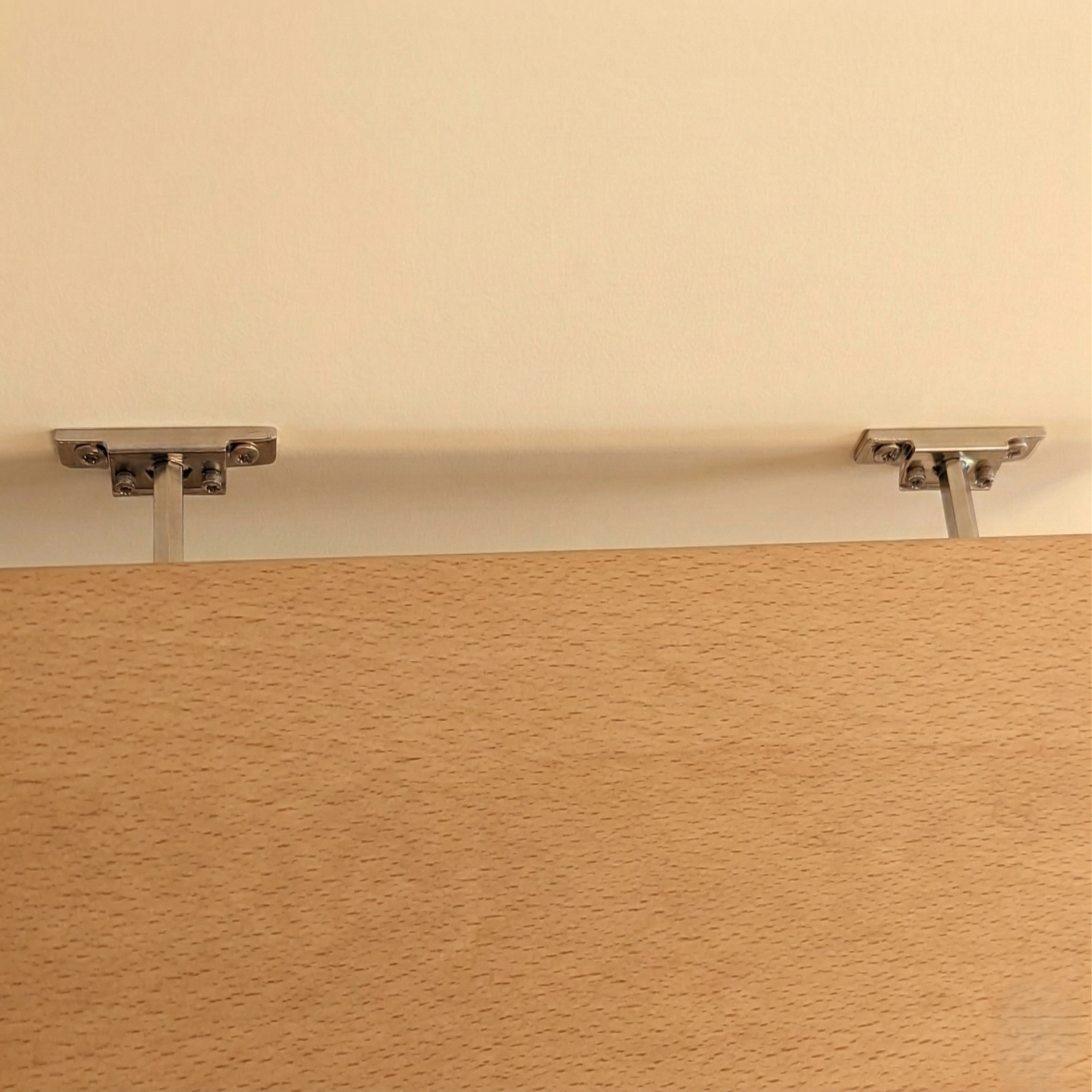 Das Regal wird montagefertig geliefert. Zuerst werden die Halterungen an der Wand befestigt, anschließend wird das Regal einfach aufgesteckt.