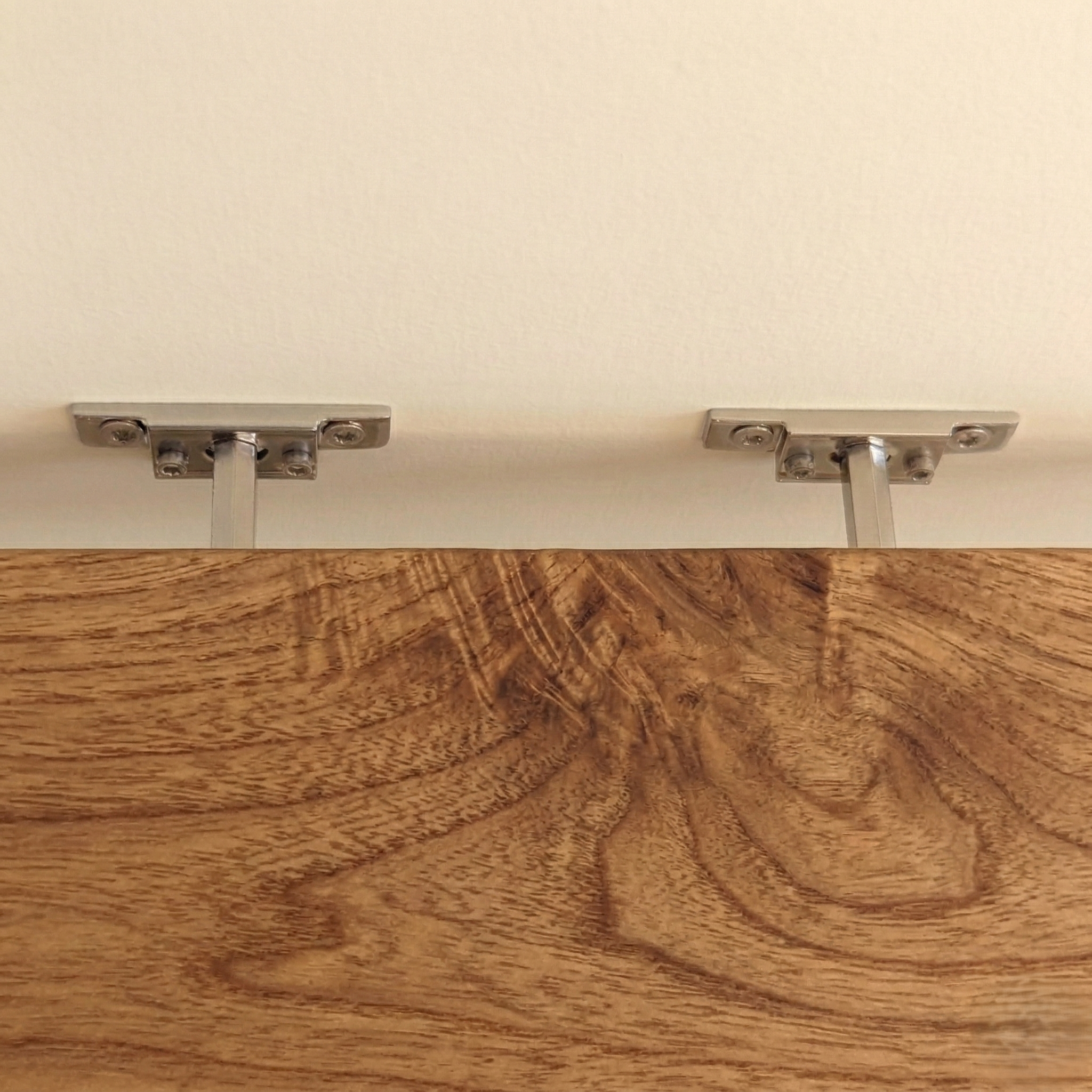 Das Regal wird mit einer verdeckten Wandhalterung montiert. Die Befestigung verschwindet vollständig im Inneren der Regalplatte und sorgt für die charakteristische schwebende Optik.